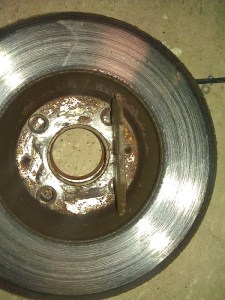 So, the old brakes came off and there was nothing massively untoward with the passenger side. Looks like there was a slight patch where the pad wasn’t making much contact but this photo doesn’t show it too well, which suggests how slight it was.