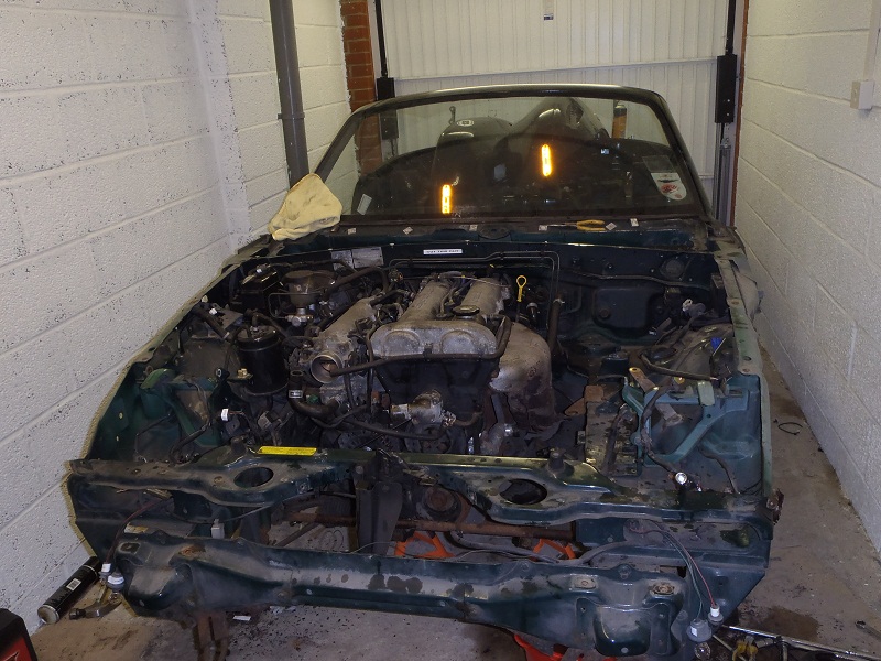 So now all the brakes are off, the front uprights are off and the front coilovers are also off. Had some help from Alex and Jon, so the cooling system is out, dash is out, air intake is out as is the carpets. Car is looking a lot more stripped now!
