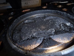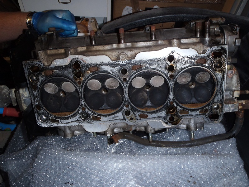 Carbon build up was up to 1mm thick or so in places! Carrying on with the removal of the head and it was clear the pistons were in a similar state.