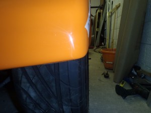 Finally, I temporarily fitted the rear arches and fixed the rear of the tub into position. I clamped on the arches, checked they were central to the wheel, re-checked the 400mm measurement at the boot, then checked it all again a few more times. Fortunately, the offset of the wheels guessed at when choosing them turned out to be spot on. 15×7, et40.