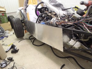 As a task to break up the wiring, riveting isn’t really the best. Still, I realised I didn’t need access to the footwells any more so on went the side panels. These basically add protection as water and small debris could find its way inside the tub from underneath and the rear arches.