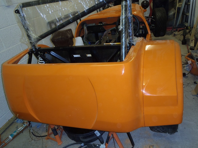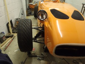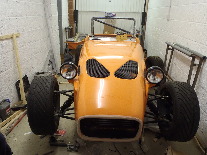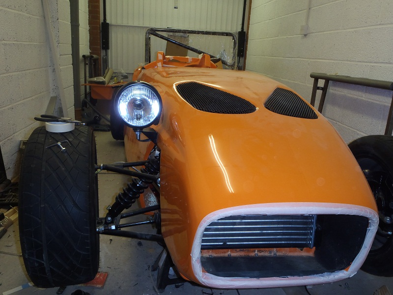 I got brave and started fitting the headlamps. I’d already removed the standard headlamp mounts which don’t get used on the FW bonnet. I test fitted the cover and taped it in place.