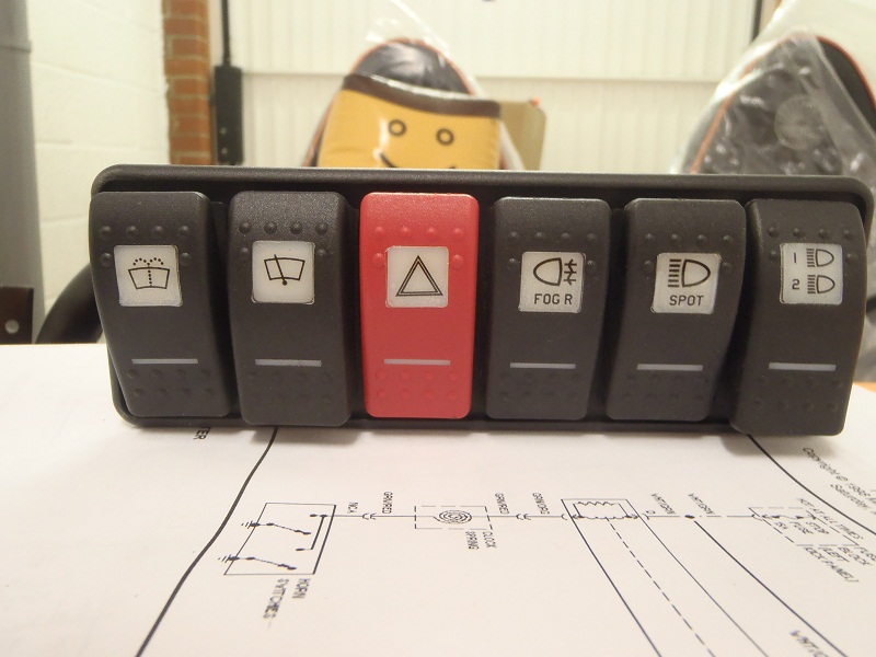 Whilst all this was going on, I did a spot of wiring to keep myself occupied. Here’s the main bank of switches to go in the middle of the dash. All wired up, though the photo doesn’t show it.