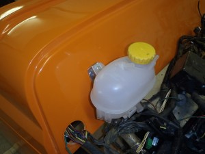 Spurred on, the coolant header tank got attached to the scuttle. I think I spent more time looking for instructions that actually fitting the thing – there’s nothing in either manual. Fortunately the odd looking piece of aluminium that I always wondered about revealed it’s true purpose.