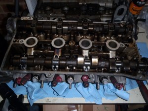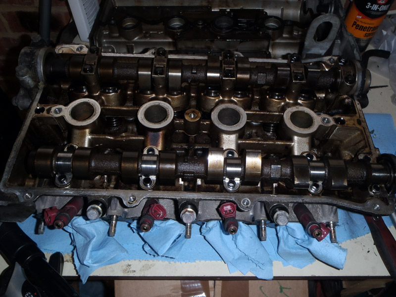 With that side done, it was time for the exhaust side. This was much the same as before, but I managed to slice the tip of my finger whilst removing one of the bearing cap bolts. Oops! Annoyingly it was one of those not-painful-but-really-bleedy ones and indeed is still bleeding a bit now nearly two hours in.