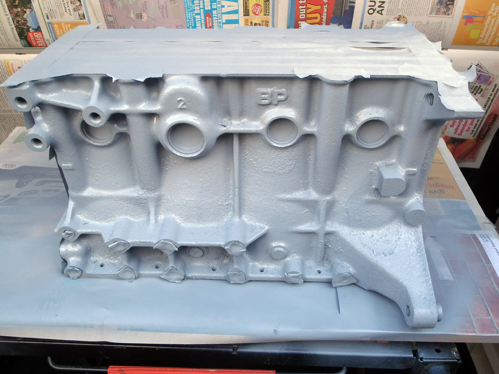Not massively different to when the primer was finished! It takes 3 hours to dry before handling, so that will do for today. Hopefully I’ll be able to get the head done tomorrow, maybe even the rocker cover if the weather holds out.