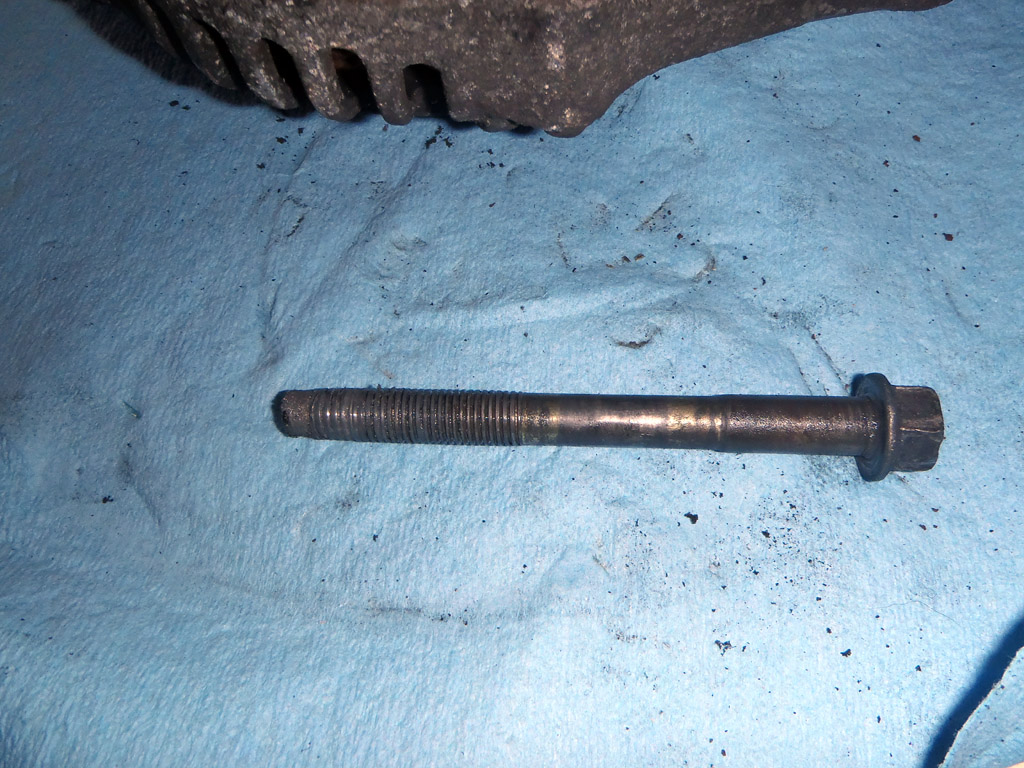 Lastly, whilst I was waiting for coats to dry I did a bit of meddling in the garage. Nothing major, just removed the thermostat housing and water pump inlet from the old engine. I also took a look at the alternator as I’d like to dismantle, clean and paint it. Removing the pulley nut now that it is off the car could be tricky though. I happened to look at the bottom bolt for it and noticed the thread was in a pretty poor state. That explains why it kept coming loose then!
