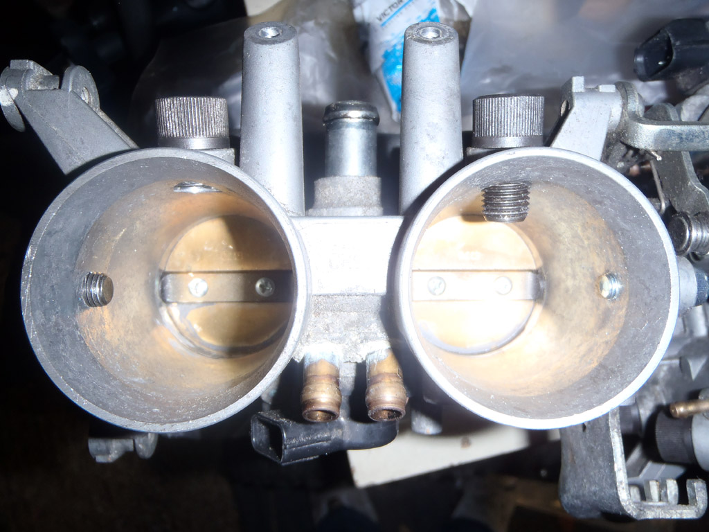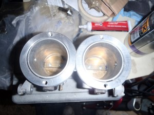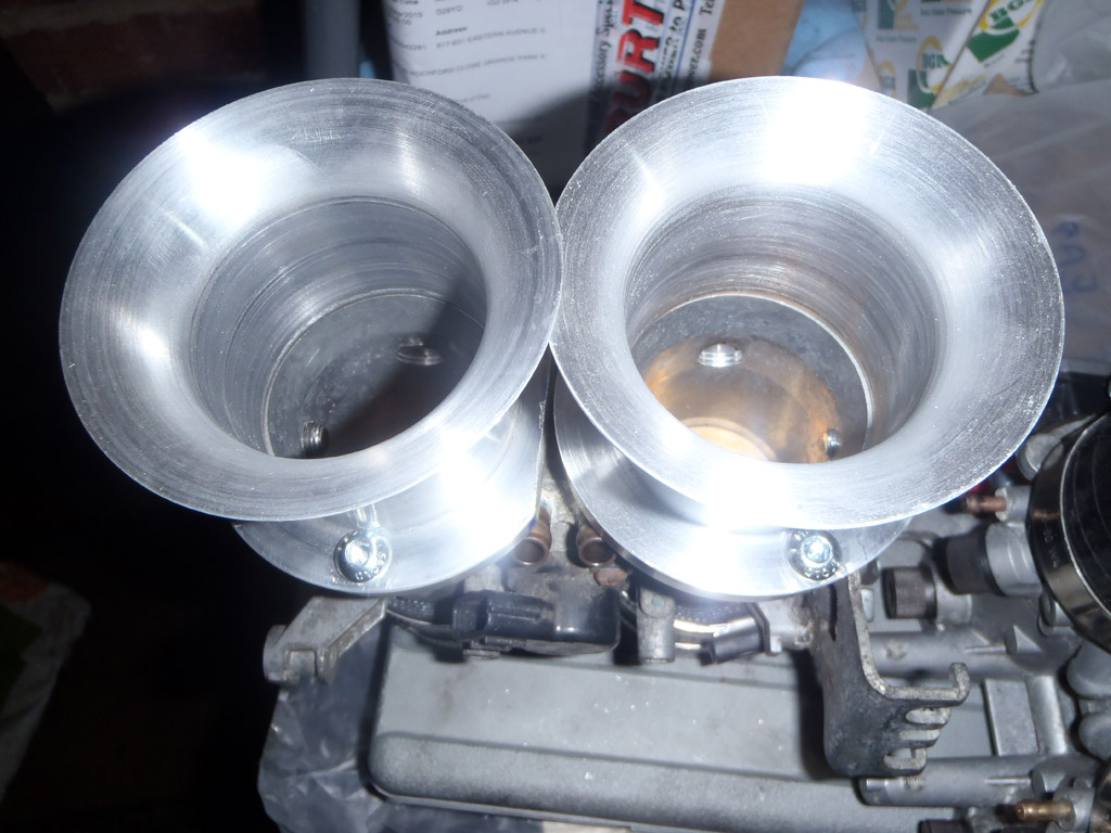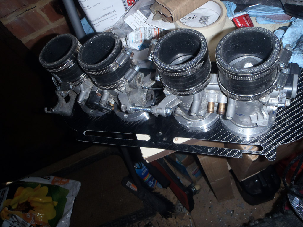Started off plugging the holes in the throttle bodies (now termed ghetto-bodies due this). These were left by the bike injectors and the second set of butterflies. Some use chemical metal and fill the holes that way, which would leave quite a smooth finish. However, I was a bit worried about it failing and ending up inside the engine, so I decided to tap the holes and fit bolts in them instead. If they come loose, they’re going out not in!