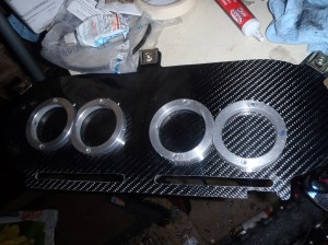I started off by fitting the rings to the ghetto-bodies, making three marks on each one, holding the backplate in the right place then translating those marks. Then, I removed each ring, placed it against the marks and drilled through the screw holes to locate it before screwing them on.