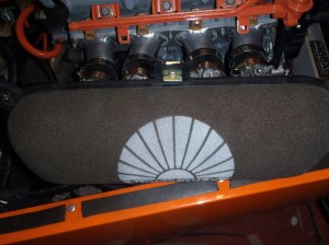 Last job was to fit the filter backplate. Unfortunately I’m tight for space here with the backplate and filter hitting the triangulation at the rear of the chassis. I’ve filed it down a bit, as much as I dare, but I’ve also had to angle the filter slightly to be safe. Shouldn’t pose a problem of course.