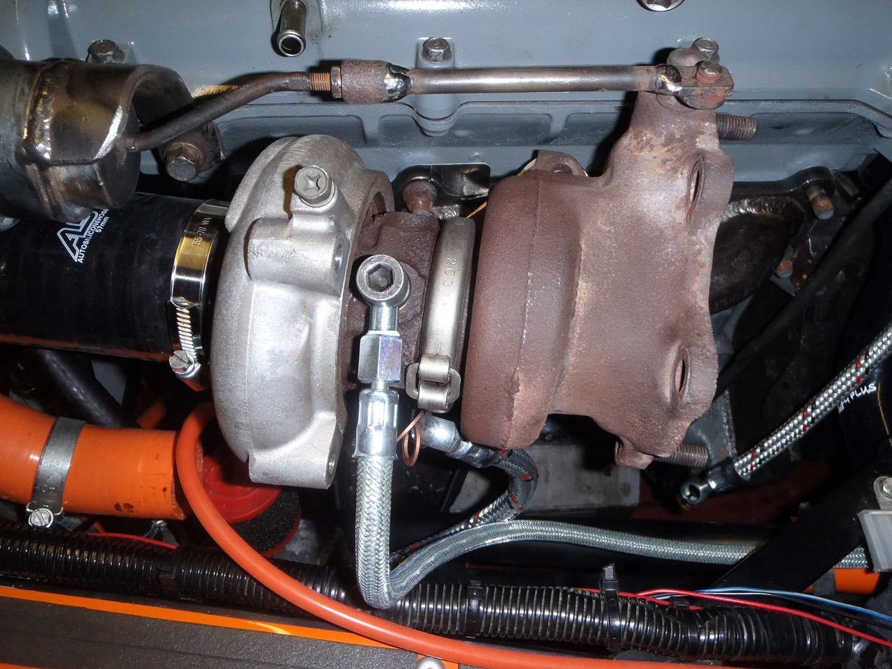 I attached the hose, ran it around the back of the engine and it fits onto the turbo fine: