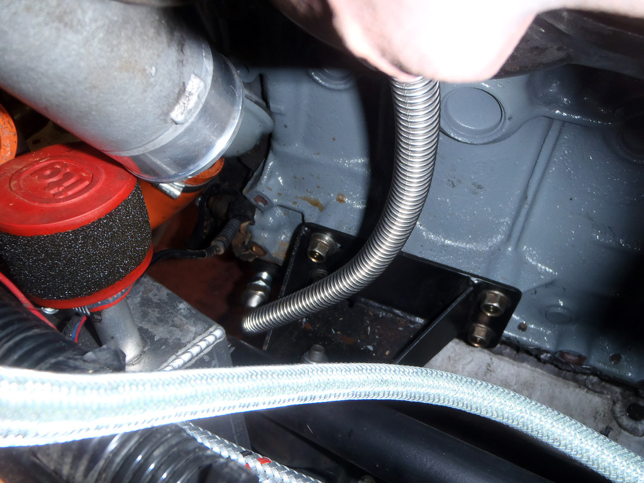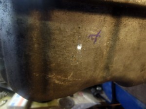 With the sump off I had a look at where I had marked to drill.
