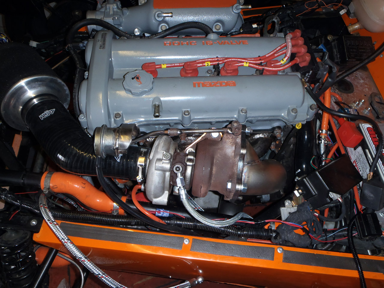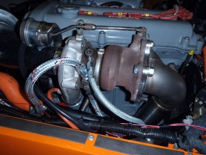 I fitted the coolant return hose. Because of the way the turbo is orientated it necessitates it pointing vertically. Luckily it can loop back down before hitting the bonnet.