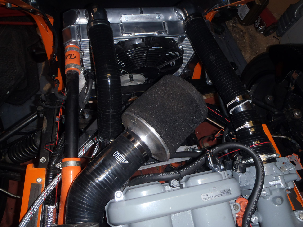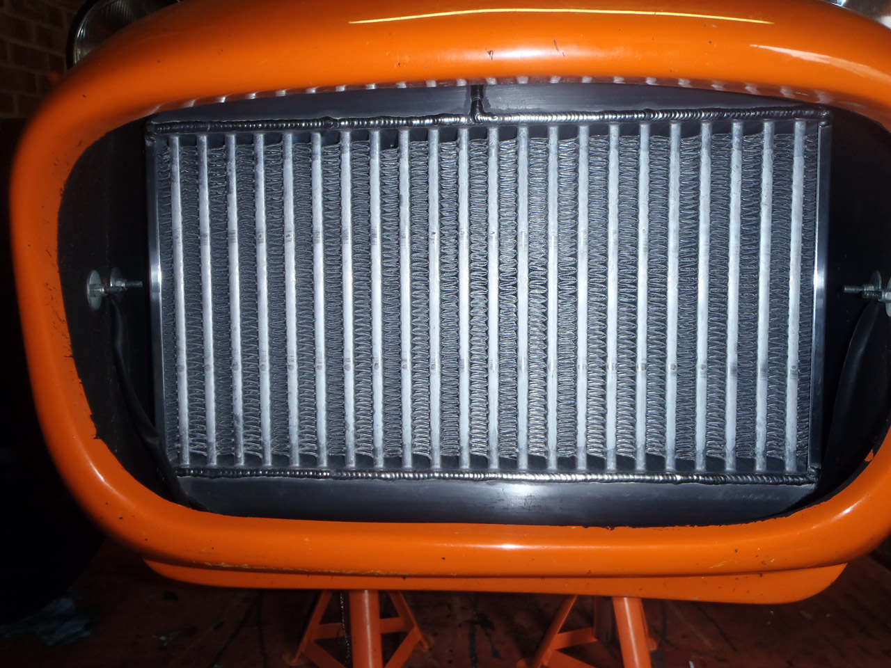 I started off by plumbing in the coolant side of things. Not too tricky, all 32mm pipework and pretty much ending up in the same place as when the polo rad was fitted.
