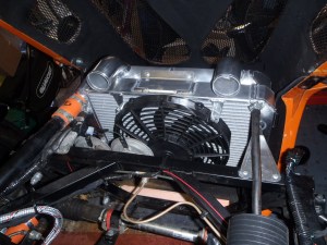To recap, it’s the radiator/intercooler package from the Westfield Sport Turbo. It doesn’t normally come with a fan switch but I asked for one to be added. Handily, they also fitted a switch itself. It’s a 92/87 degree one which is what I need, so the old one can stay in the old radiator. Unlike the old radiator, the fan switch is now mounted on the outlet so shouldn’t come on too early anymore.
